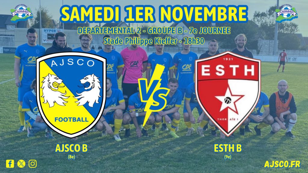 AJSCO B / ES Thury-Harcourt samedi à 18h30 au Stade Philippe Kieffer.