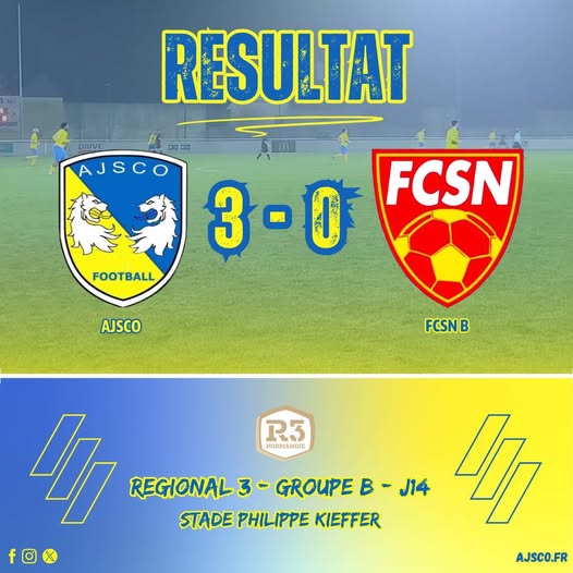 Prochain RDV : Regional 3 – Groupe C – J15 : CA Lisieux B/ AJSCO samedi 14/03 à 19h15 au Stade de Hauteville.