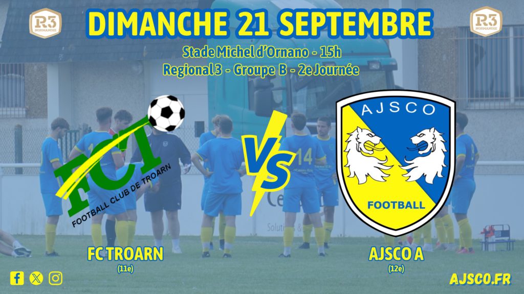 FC Troarn / AJSCO dimanche 21/05 à 15h au Stade Michel d’Ornano de Troarn.