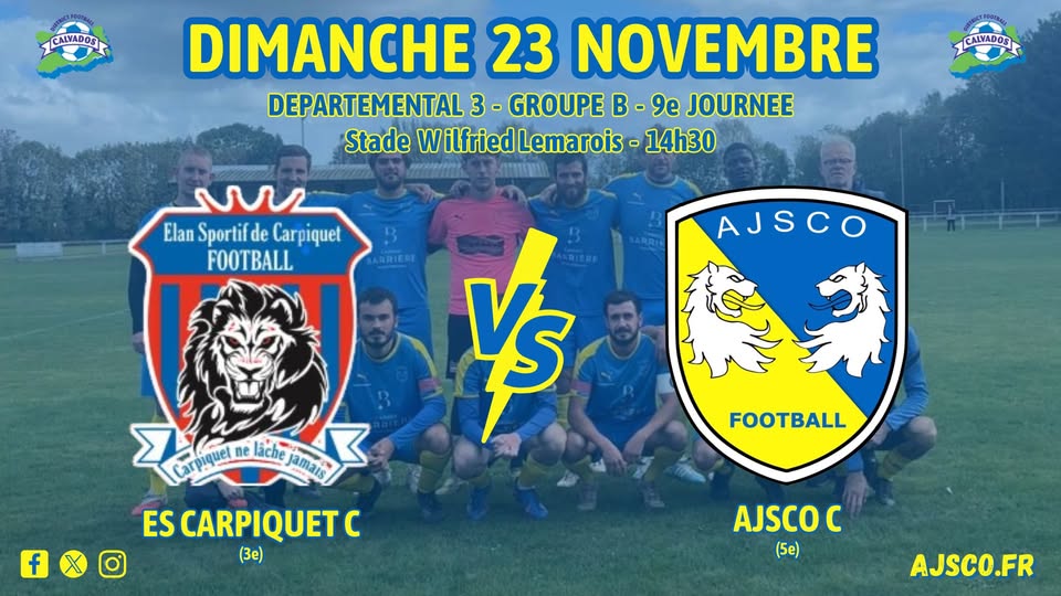 ES Carpiquet C / AJSCO dimanche à 14h30 au Stade Wilfried Lemarois
